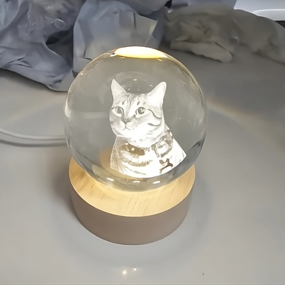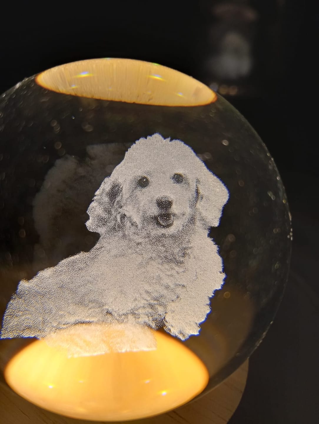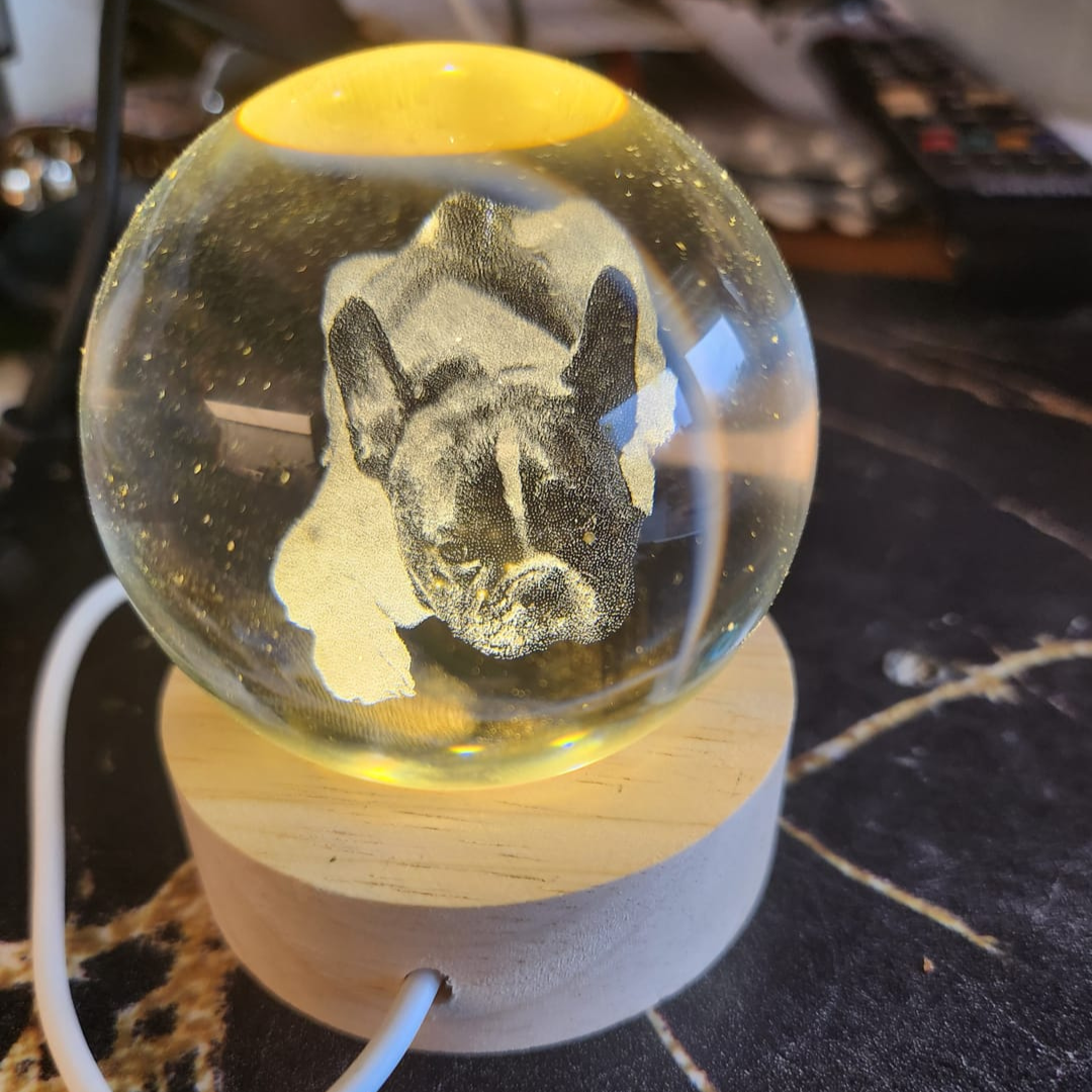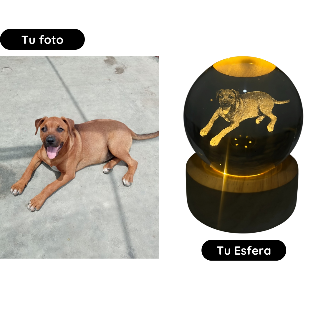 Sí, todas nuestras esferas vienen con su base de madera incluida. La base tiene luz LED, lo que permite que la imagen grabada se ilumine suavemente, creando un efecto mágico.